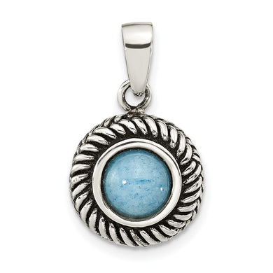 Sterling Silver Antiqued Circle Imitation Turquoise Pendant