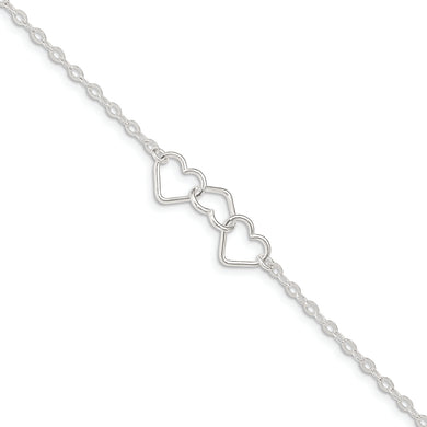 Sterling Silver 10inch Solid Polished Fancy Heart Link Anklet