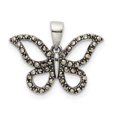 Sterling Silver Antiqued Polished Marcasite Butterfly Pendant