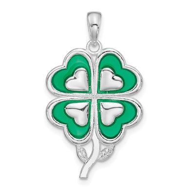 Sterling Silver Polished Enameled 4-Leaf Clover Pendant