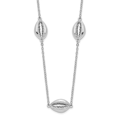 Sterling Silver Rhodium-plated Polished Cowrie Shell Necklace