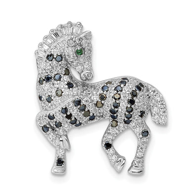 Sterling Silver Rhodium-plated Polished CZ Zebra Chain Slide