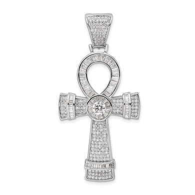 Sterling Silver Rhodium-plated Polished CZ Ankh Cross Pendant