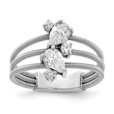 Sterling Silver Cheryl M Rhodium-plated Fancy CZ Textured Ring
