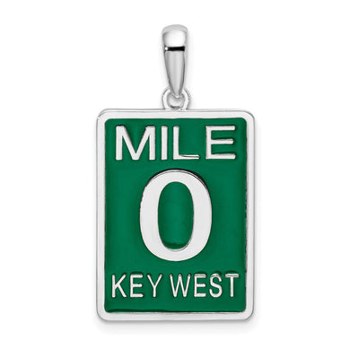 Sterling Silver Polished Enameled Large Key West Mile 0 Pendant