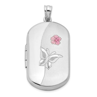 Sterling Silver RH-plated Enamel Flower Butterfly 30x19mm Rectangle Locket