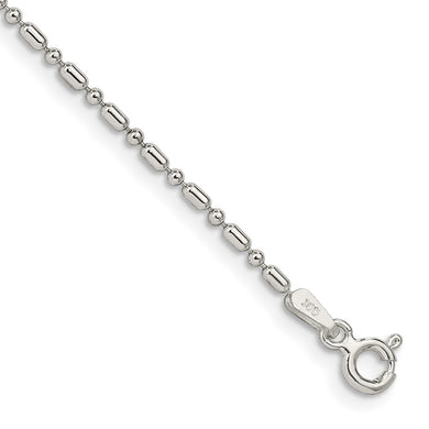 Sterling Silver 1.5mm Fancy Beaded Chain Anklet
