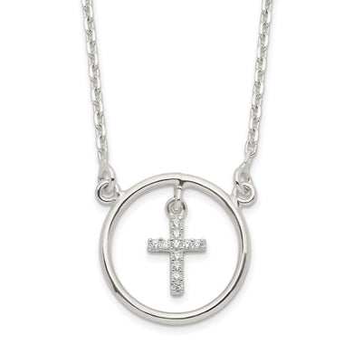 Sterling Silver Polished Rhodium-plated CZ Half Circle Post Earrings