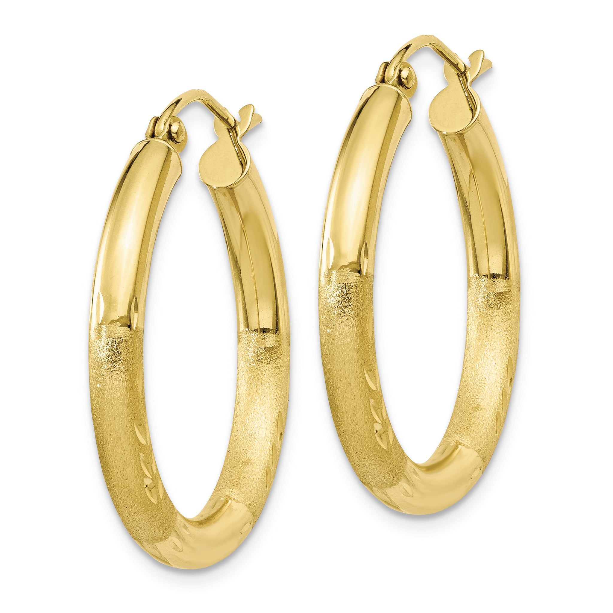 10k Satin & Diamond-cut 3mm Round Hoop Earrings