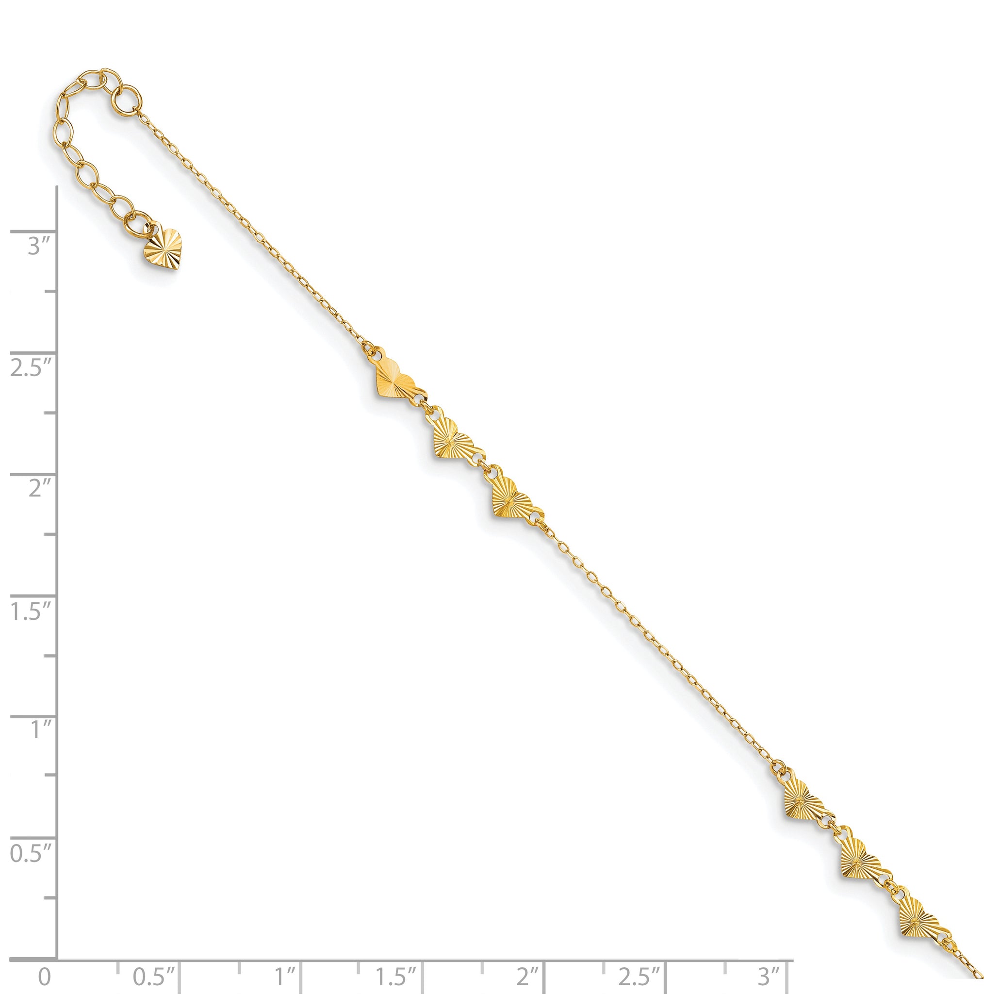 14K Diamond-cut Hearts 9in Plus 1in ext Anklet