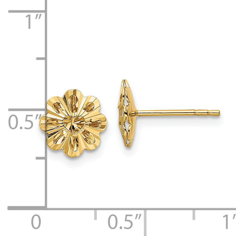 14k Polished Diamond-cut Snowflake Post Earrings