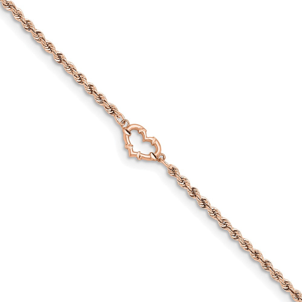 14k Rose Gold Diamond-cut Rope with Heart 10in Anklet