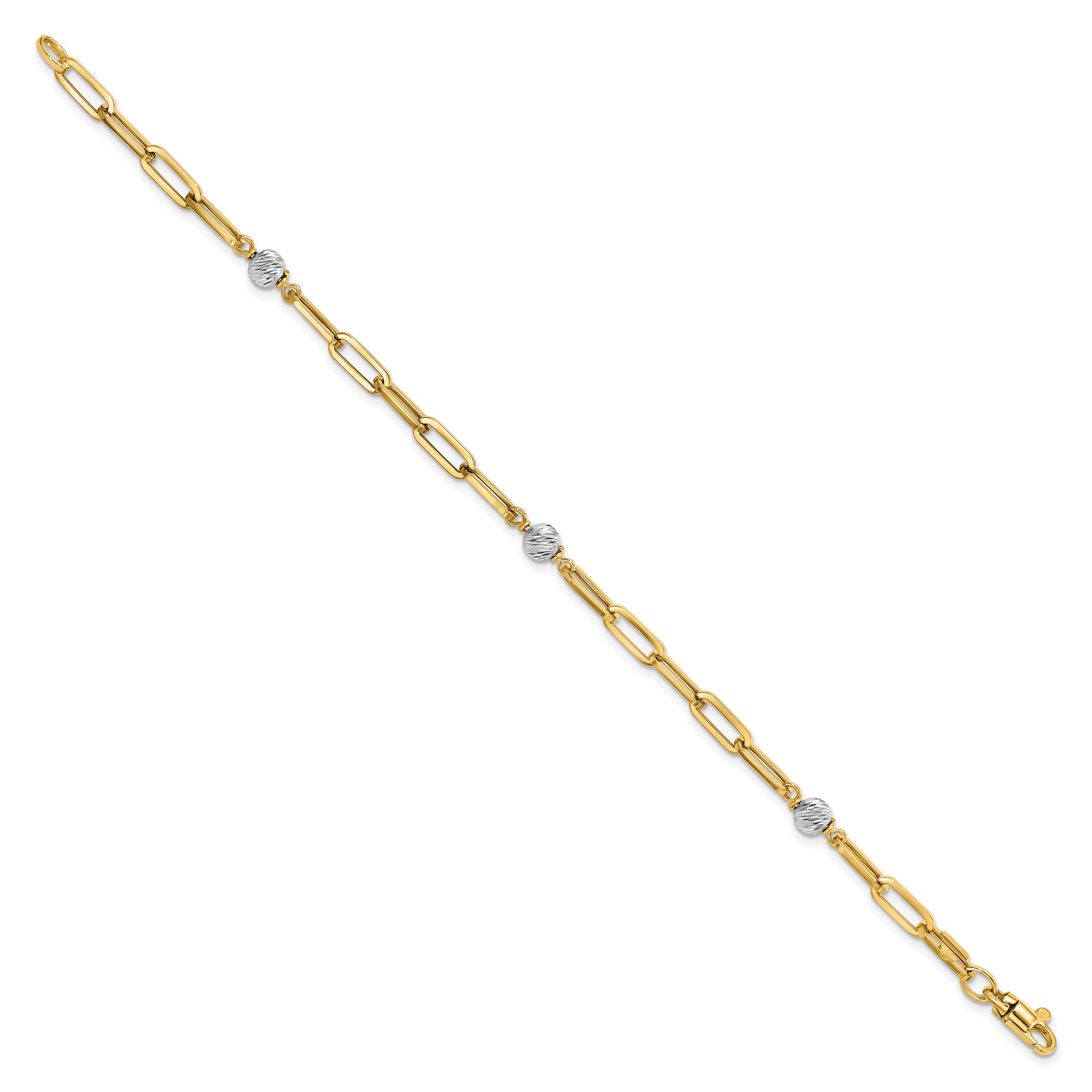14K Two-tone Polished D/C Beads & Fancy Link Bracelet