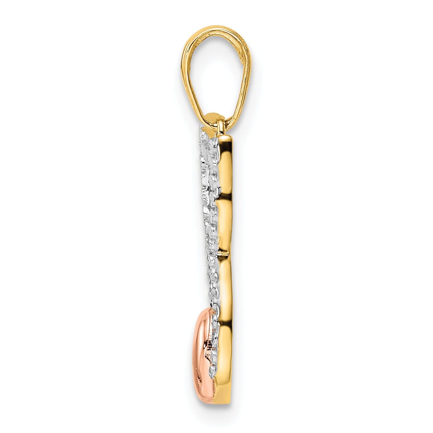 14k w/White and Rose Rhodium Diamond-cut Cat w/ Heart Pendant
