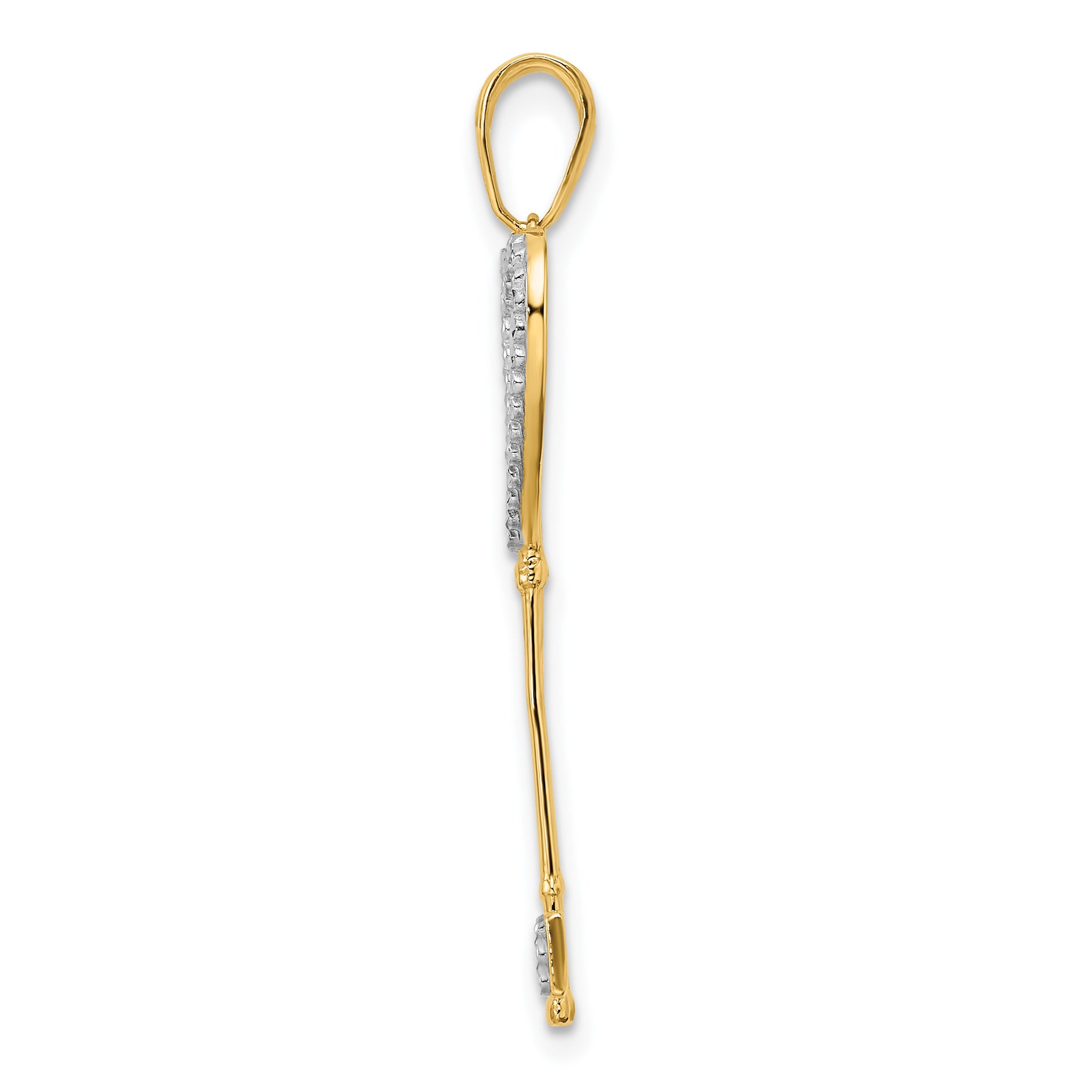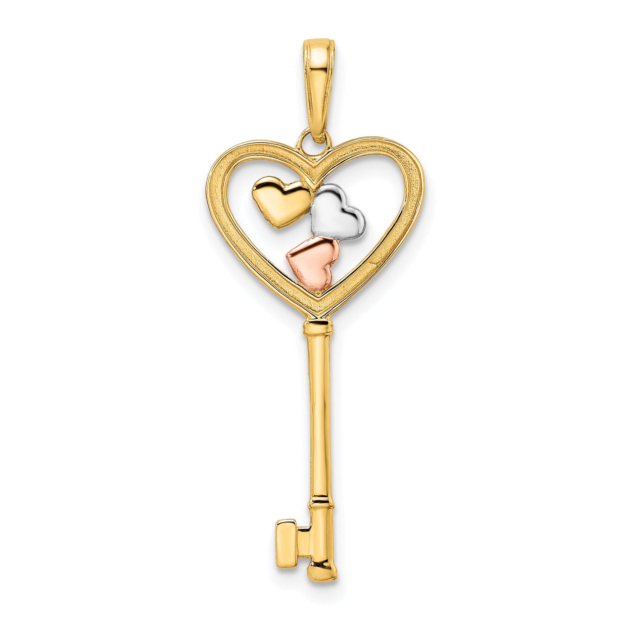 14k w/White and Rose Rhodium Diamond-cut Hearts Key Pendant