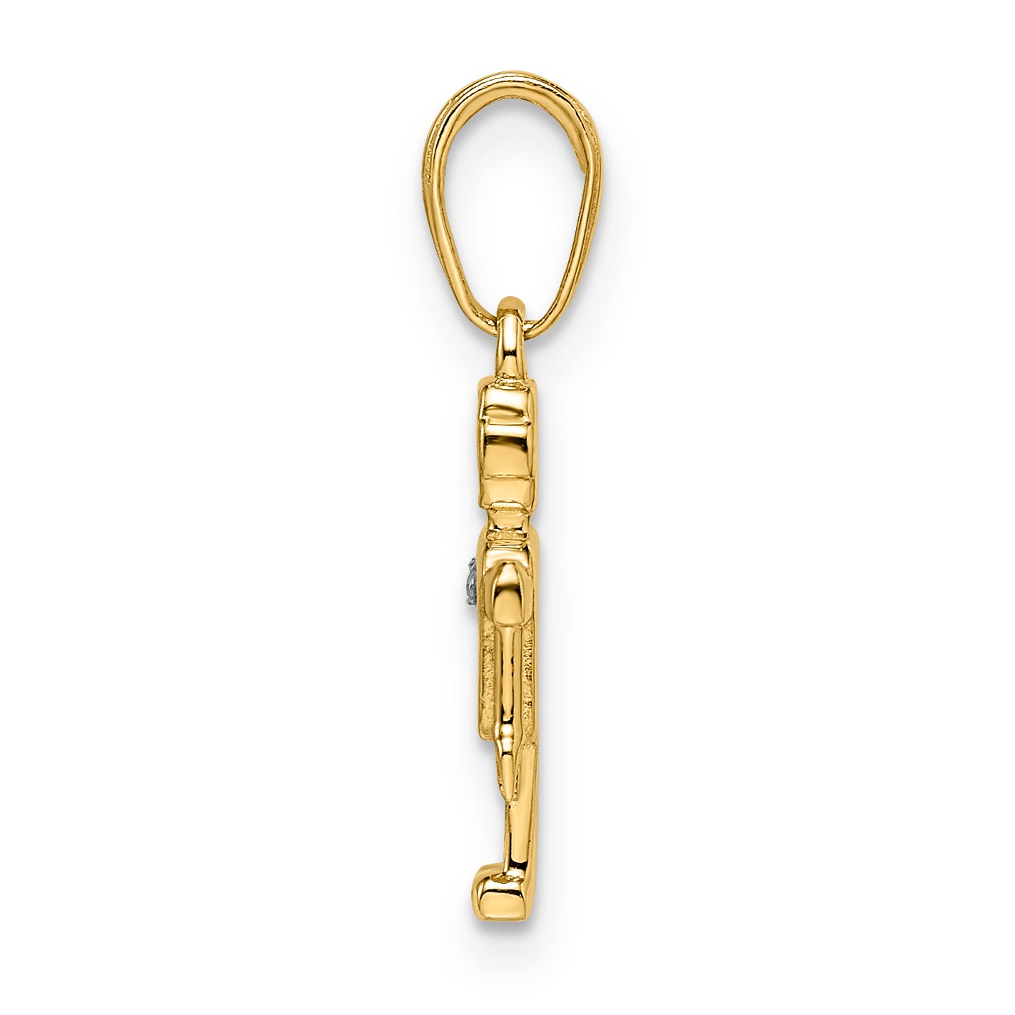 14k w/ White Rhodium Diamond-cut Robot Pendant