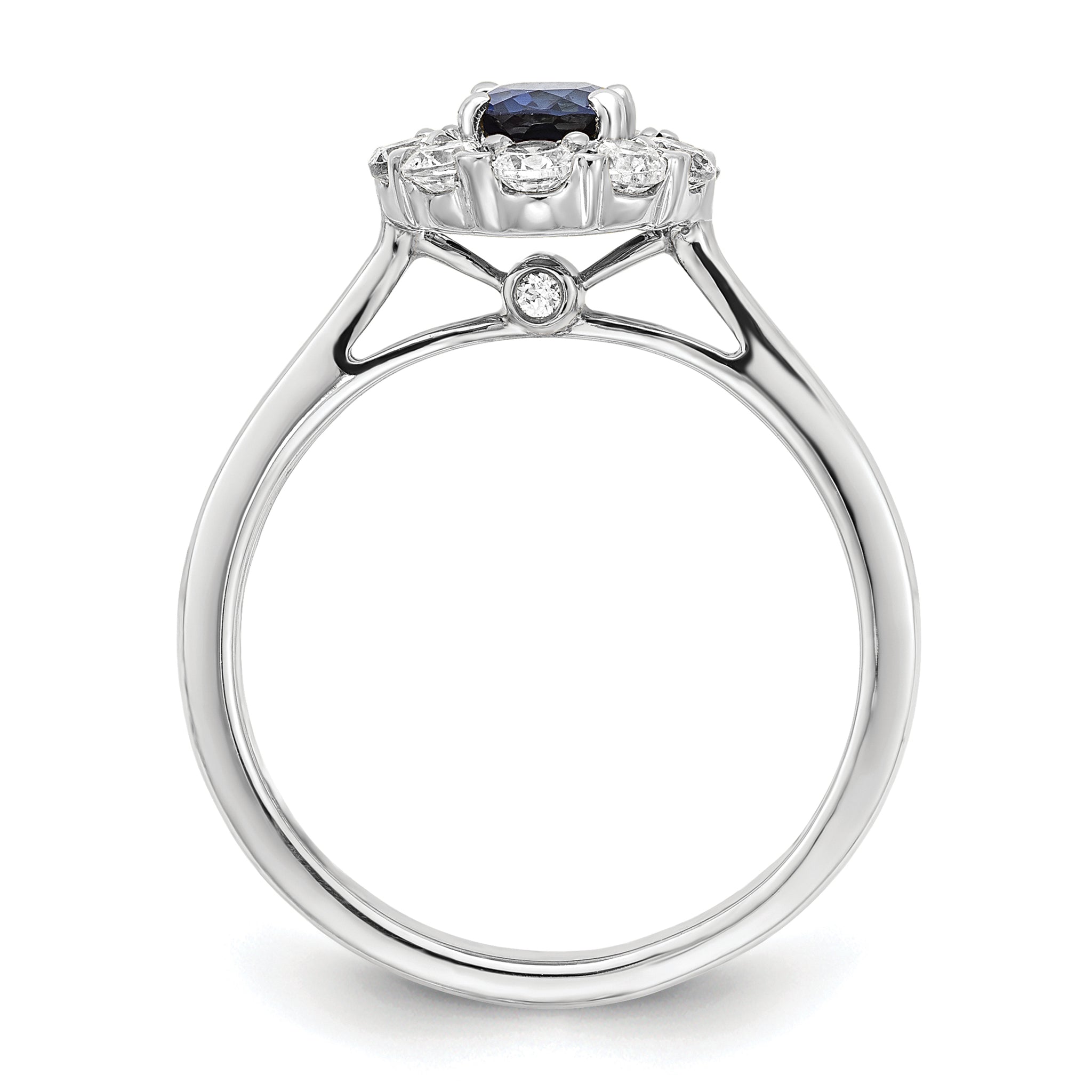 14K White Gold Lab Grown Diamond & Cr. Oval Blue Sapphire Fashion Ring