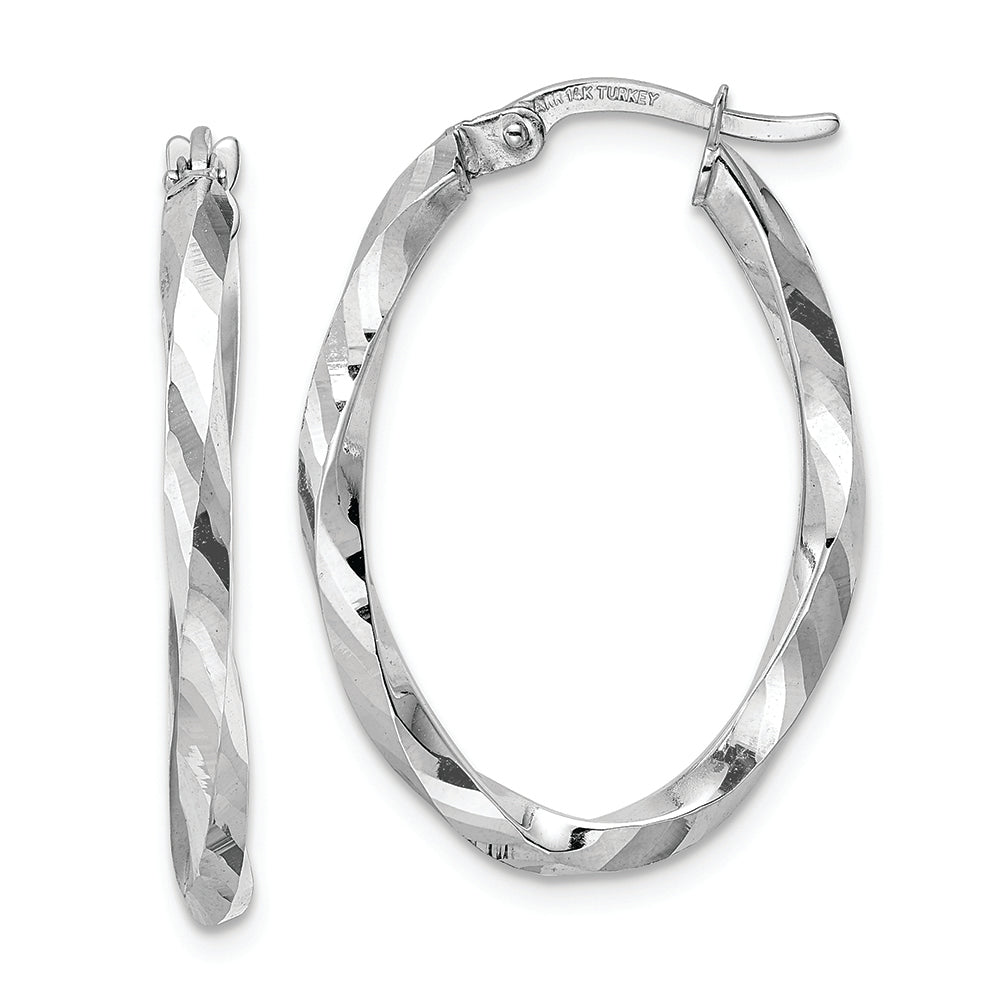 14k White Gold Polished 2.5x20x29mm Oval Hoop Earrings