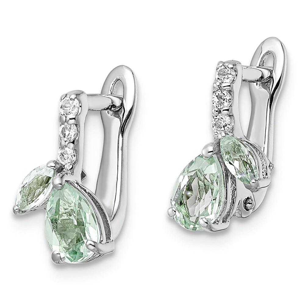 SS RH-plated 1.85t.w. Green Quartz/White Topaz Hinged Earrings