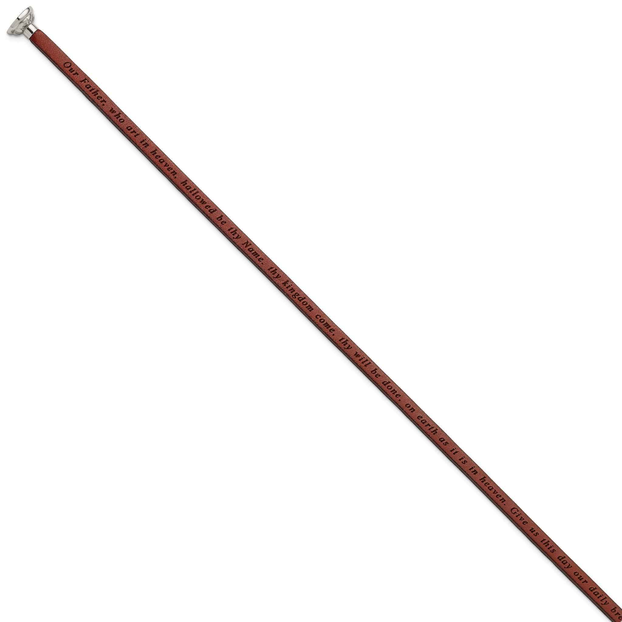 Stainless Steel Lord's Prayer Brown Leather Wrap 23.5 Inch Bracelet