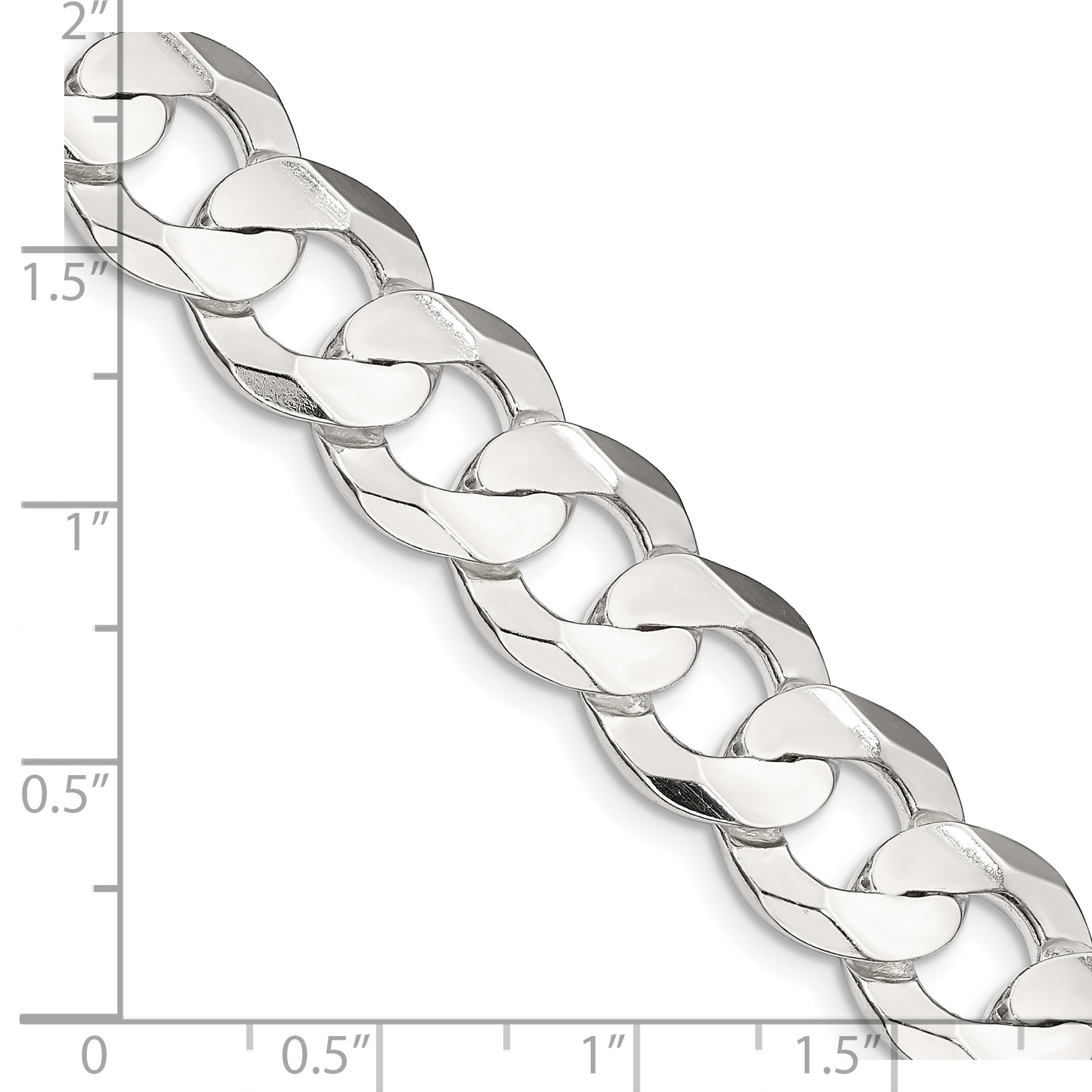 Sterling Silver 11.9mm Concave Beveled Curb Chain