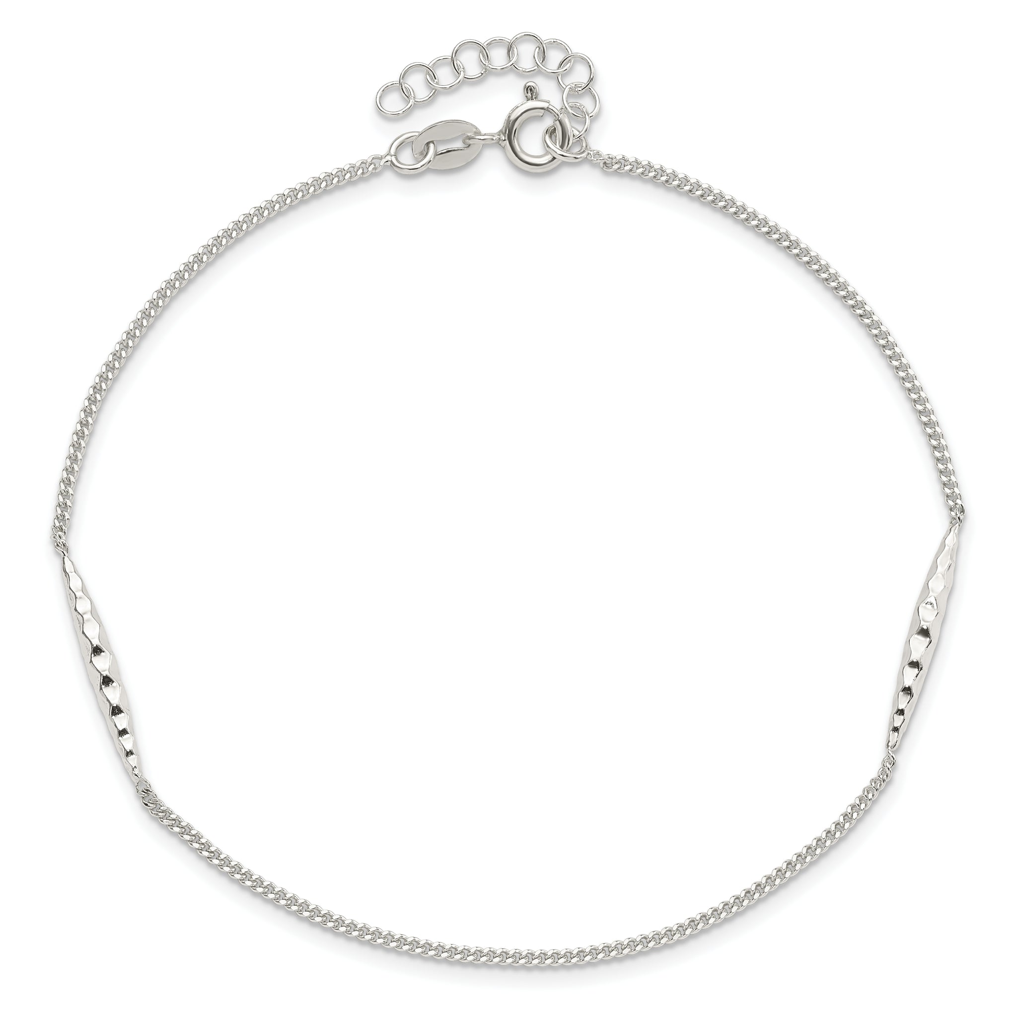 Sterling Silver 9in Plus 1 in Ext. Textured Bar Anklet