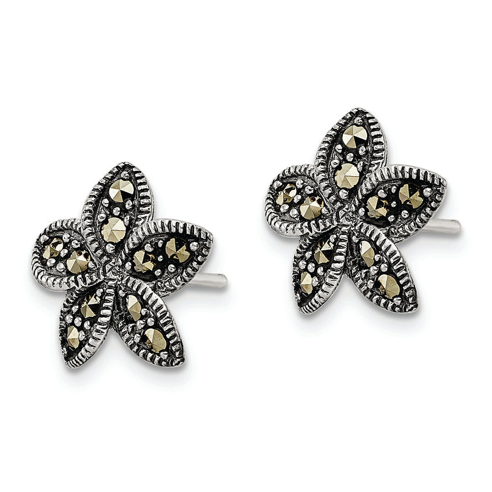 Sterling Silver Antiqued Marcasite Flower Post Earrings