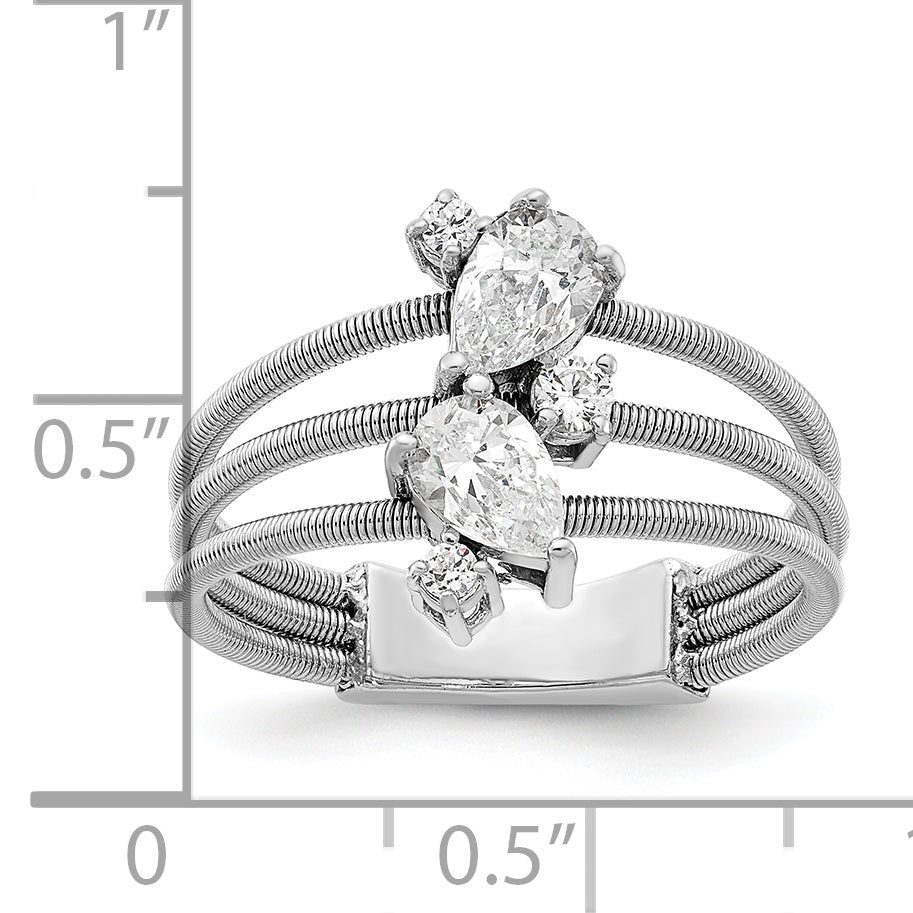 Sterling Silver Cheryl M Rhodium-plated Fancy CZ Textured Ring