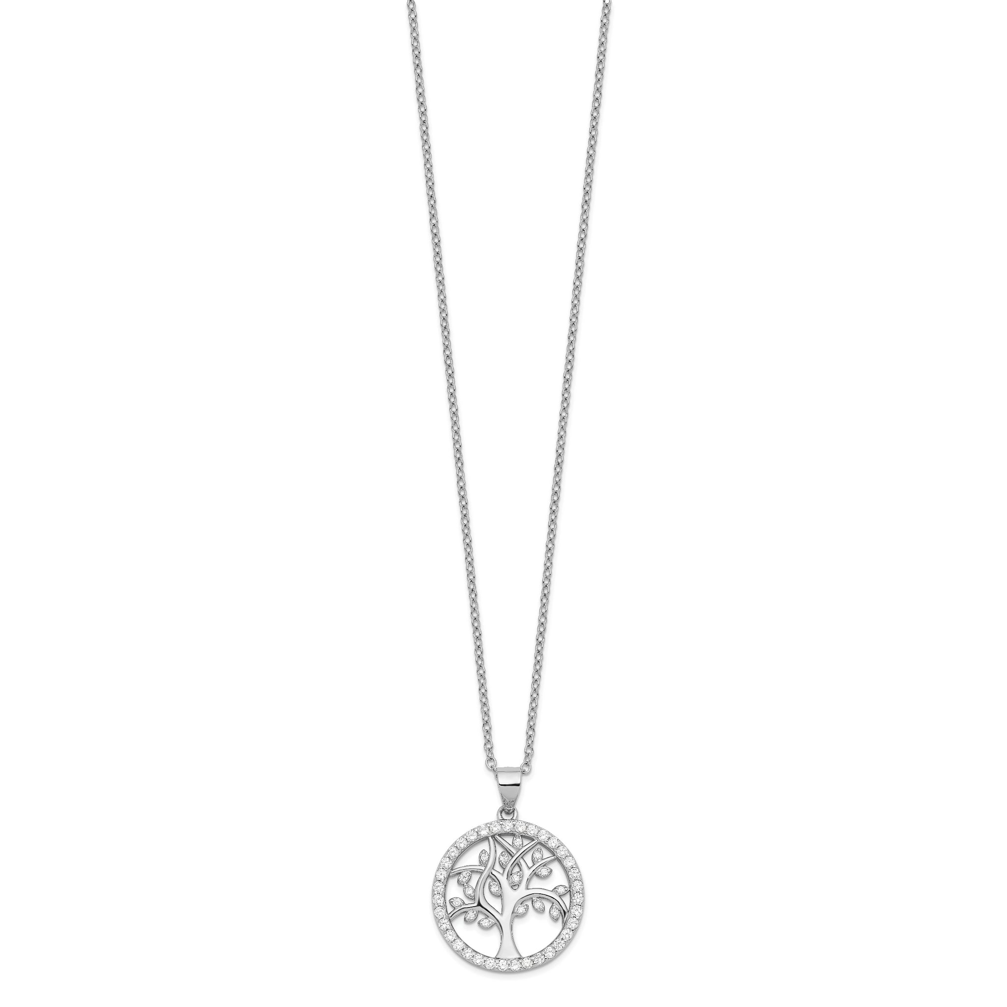 Sterling Silver Cheryl M Rhodium-plated Tree of Life CZ Necklace