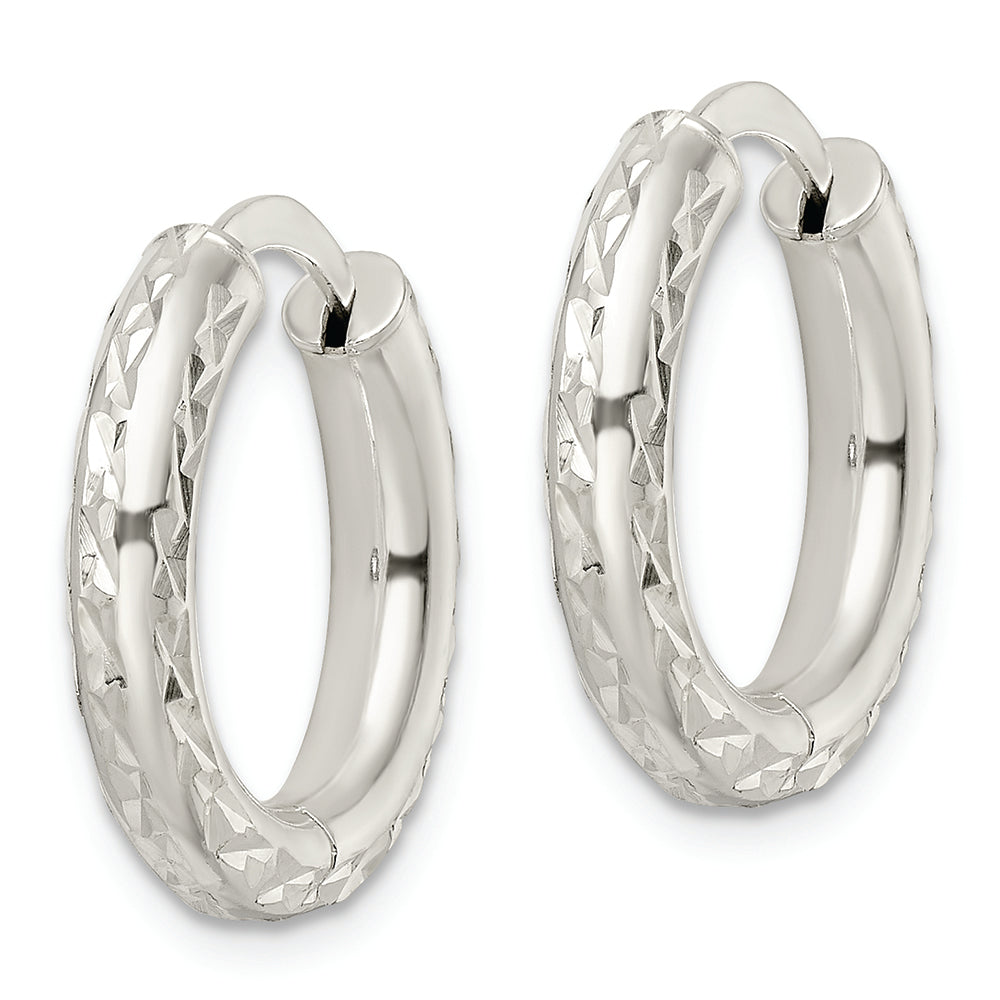 Sterling Silver Diamond-cut 3.5x20mm Hinged Tube Hoop Earrings