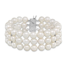 Sterling Silver Majestik Rh-pl 8-9mm Wht Imit. Shell Pearl Multi-strand Bra