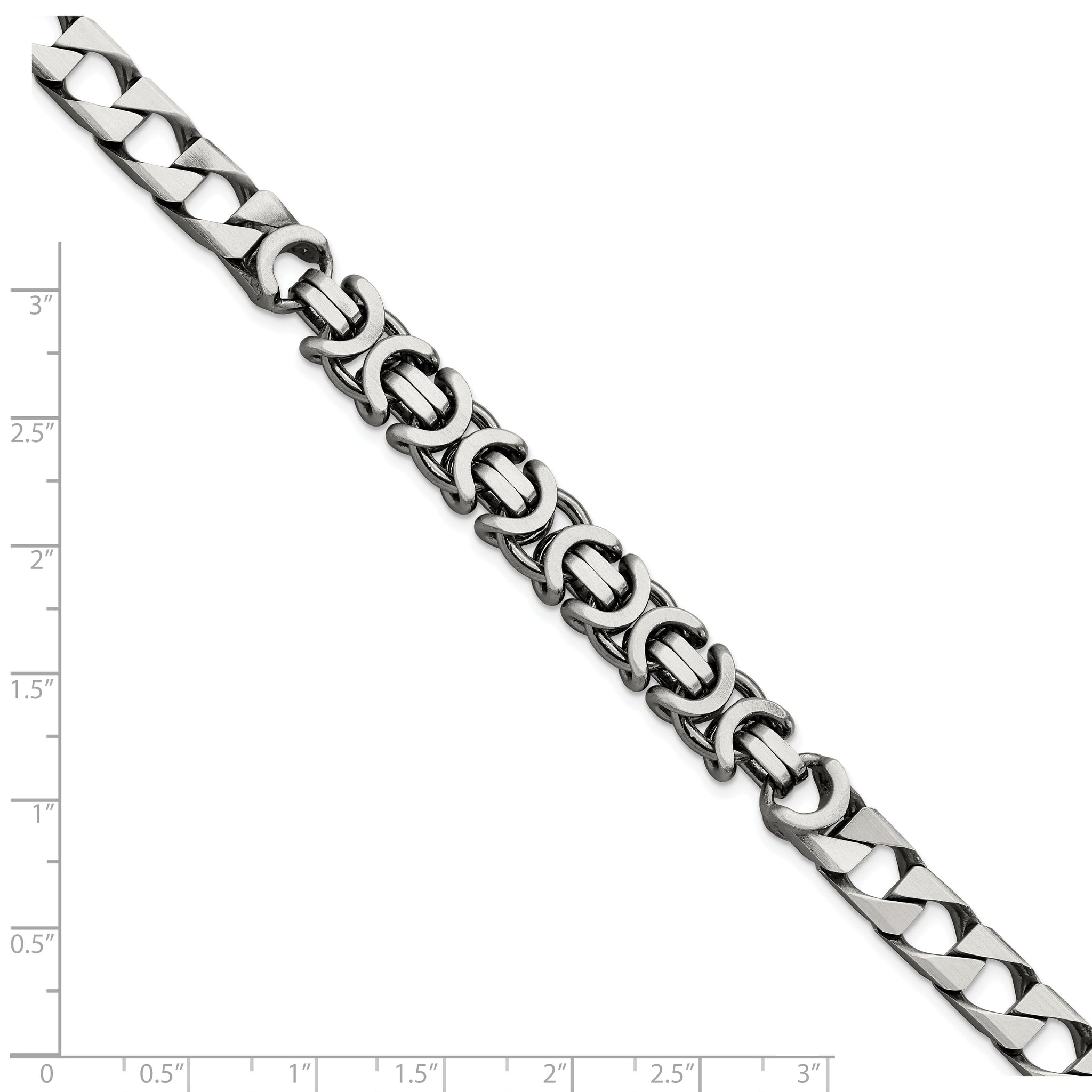 Sterling Silver Mens Antiqued Brushed Curb/Circles Bracelet