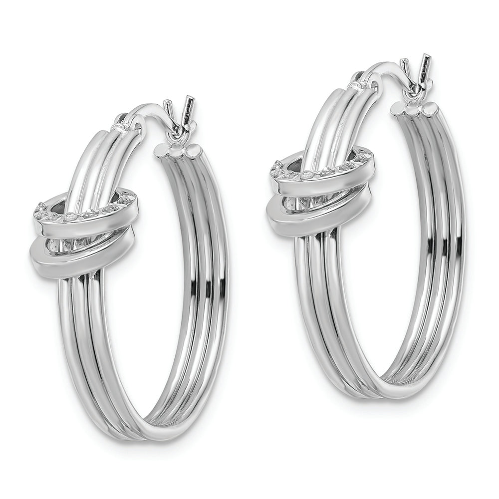 Sterling Silver Platinum-Plated Diamond Mystique Fancy Hoop Earrings