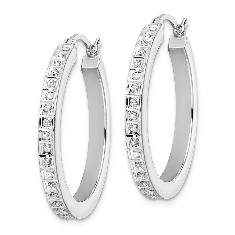 Sterling Silver Platinum-Plated Diamond Mystique Hoop Earrings