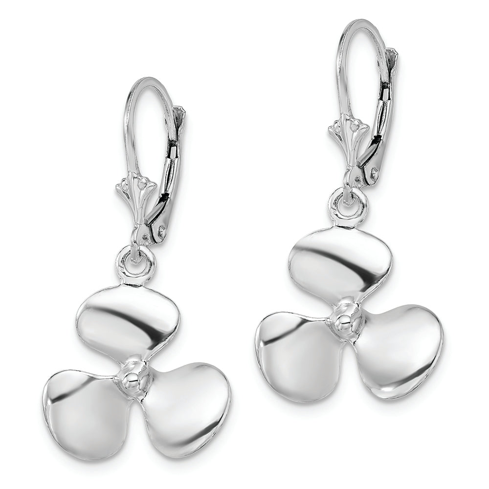 Sterling Silver Polished 3D Propeller Leverback Earrings