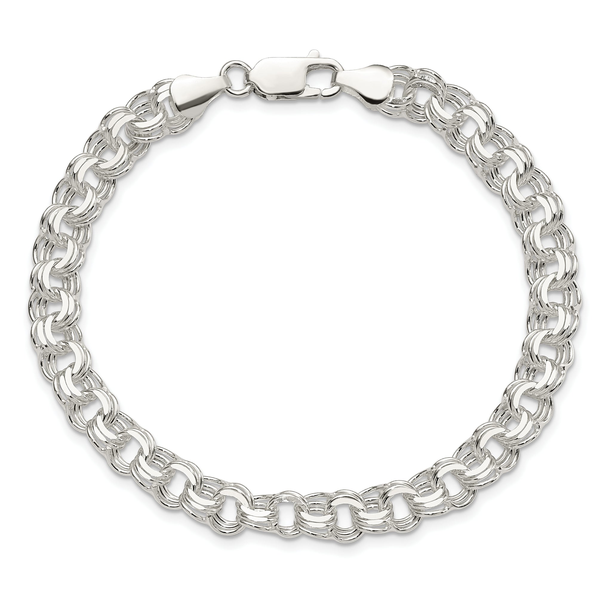 Sterling Silver Polished 7mm Triple Link Charm Bracelet