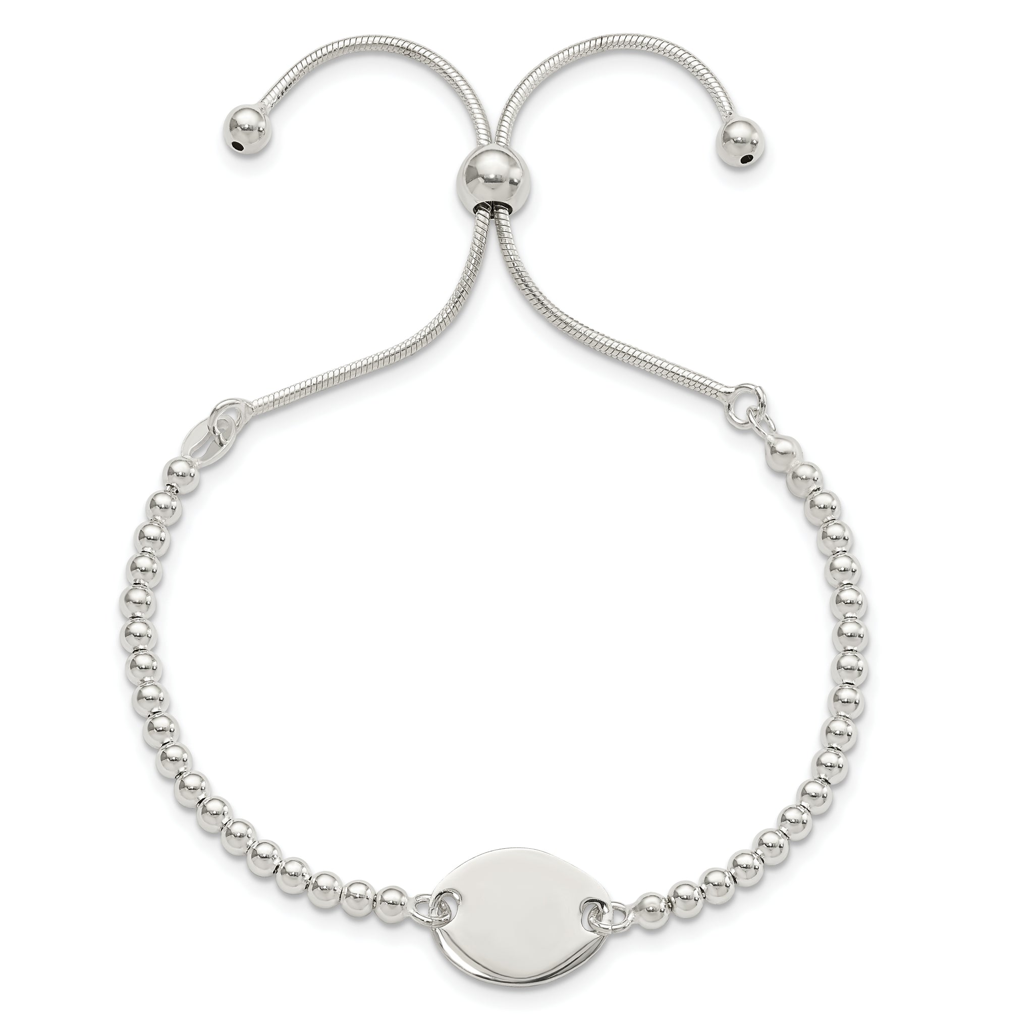 Sterling Silver Polished Beaded Adjustable Bracelet