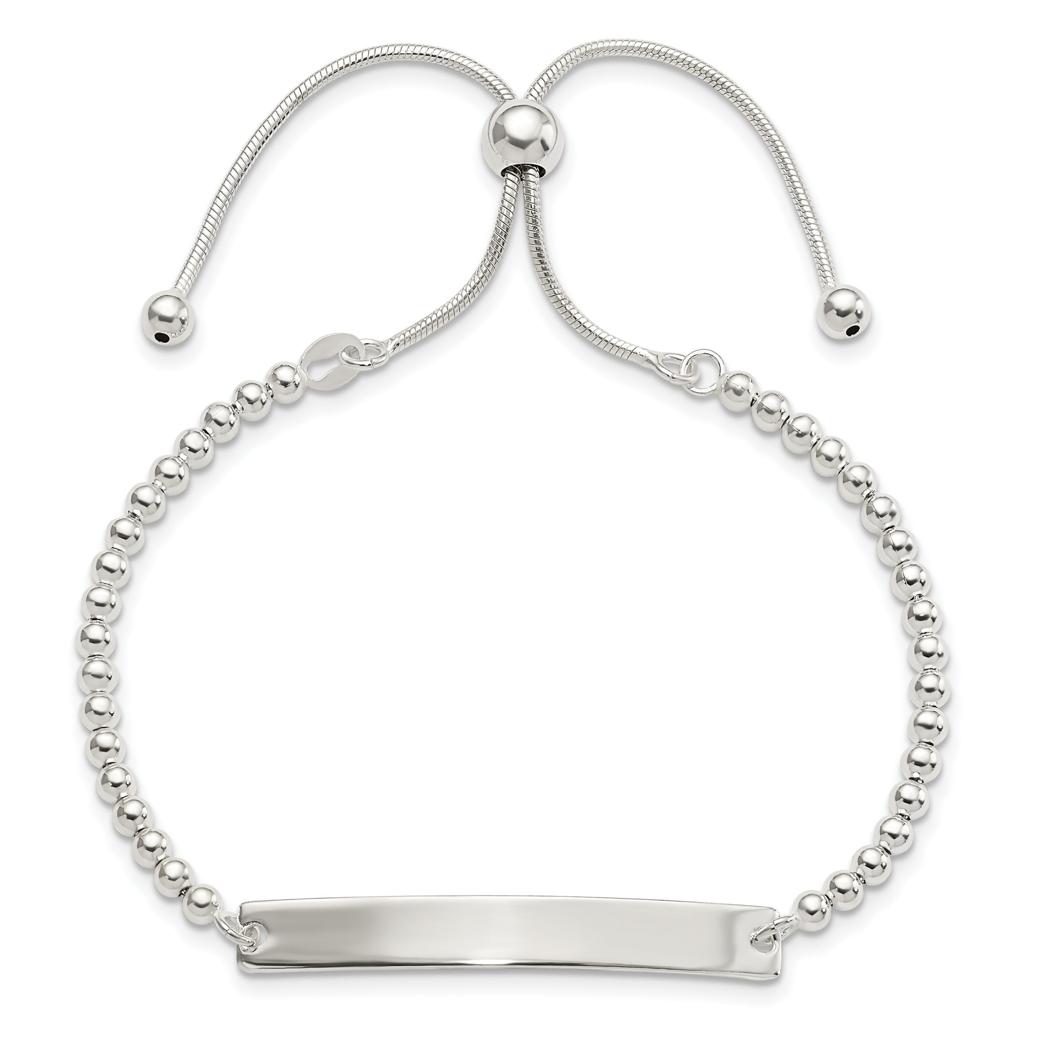Sterling Silver Polished Beaded Adjustable ID Bracelet