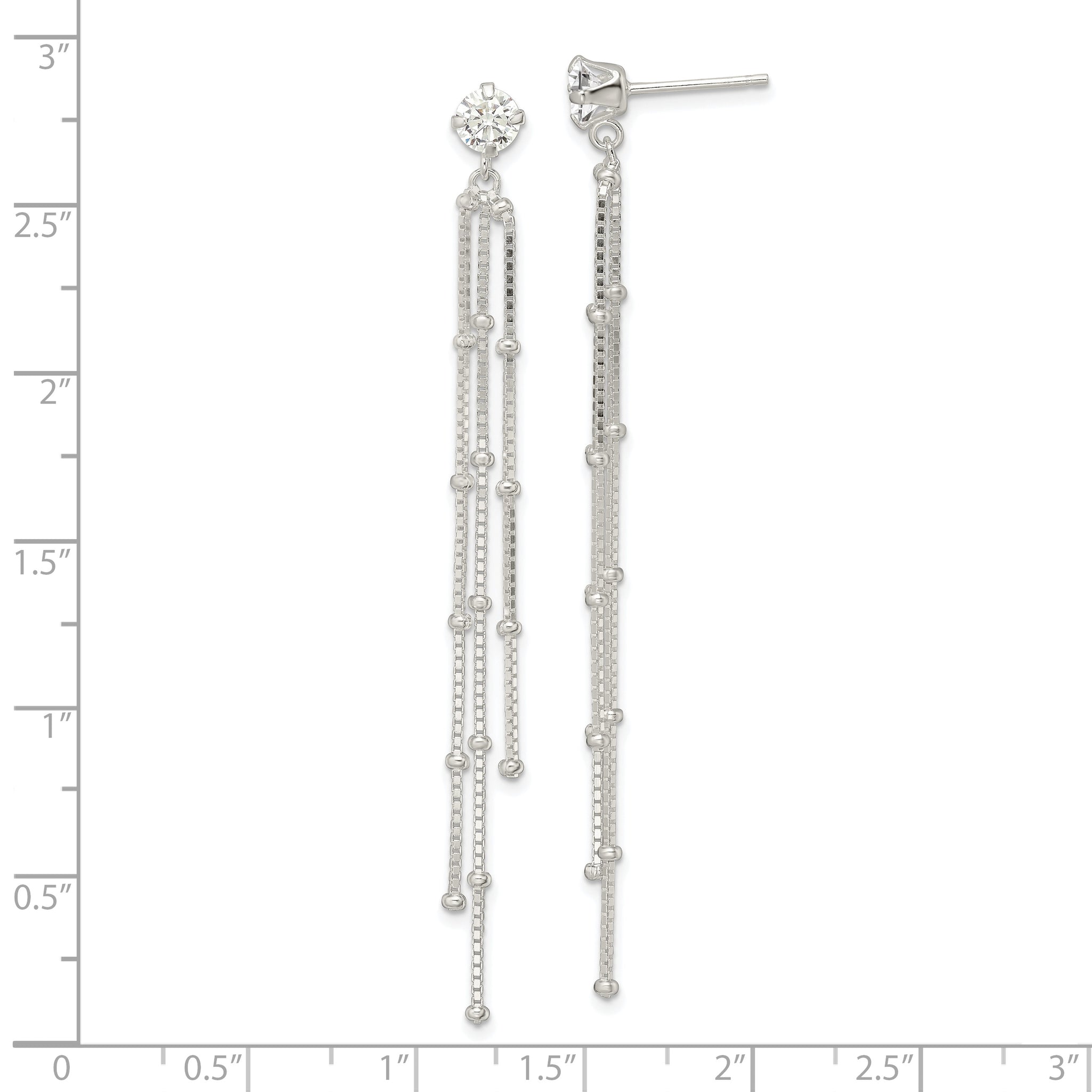 Sterling Silver Polished CZ Beaded Chain Dangle Post Earrings