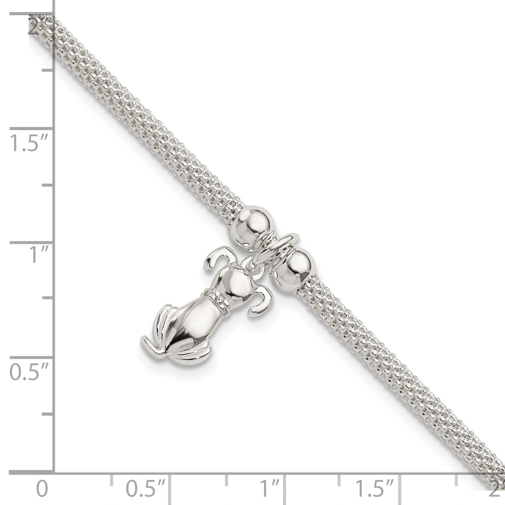 Sterling Silver Polished CZ Dog Charm Bracelet