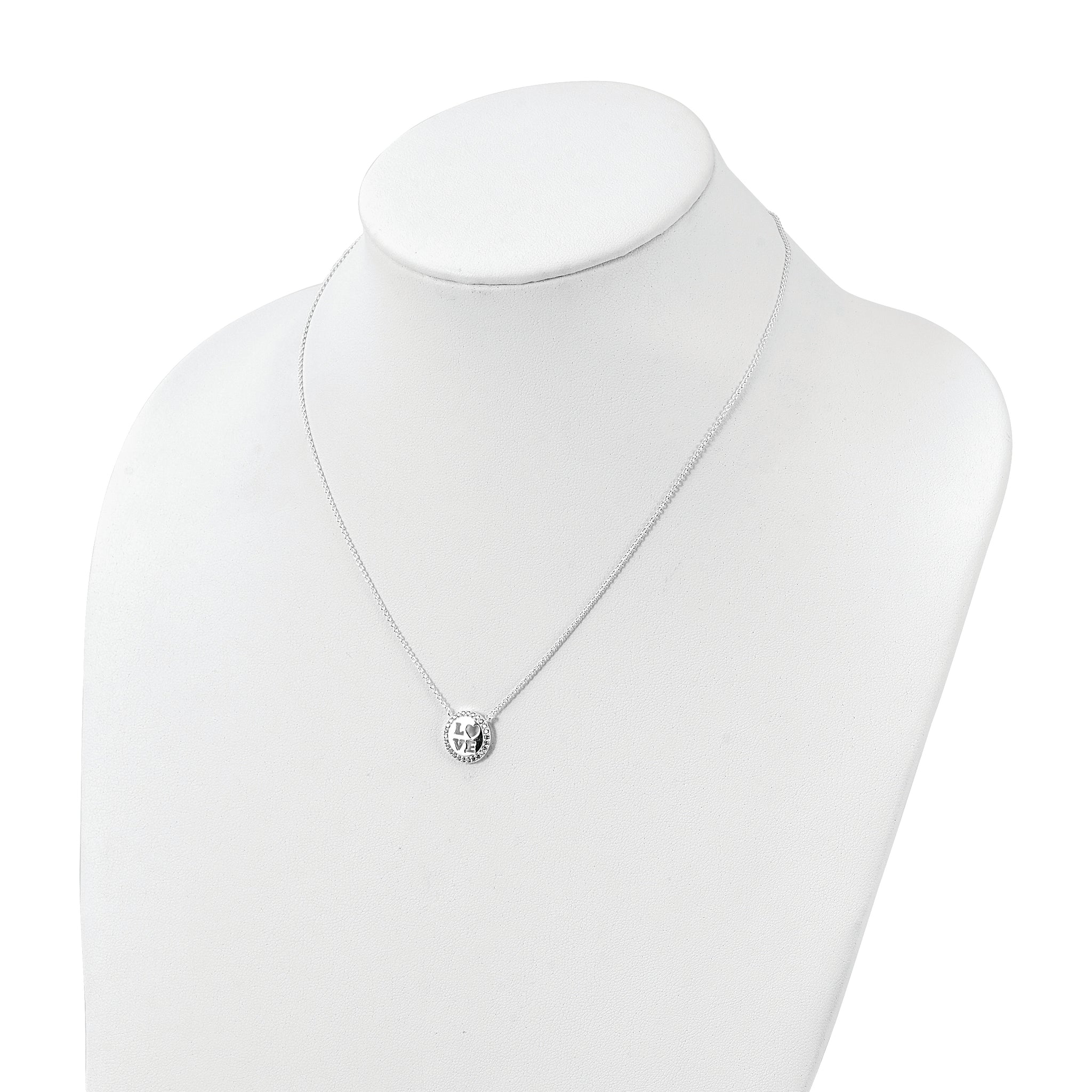 Sterling Silver Polished CZ Love Necklace