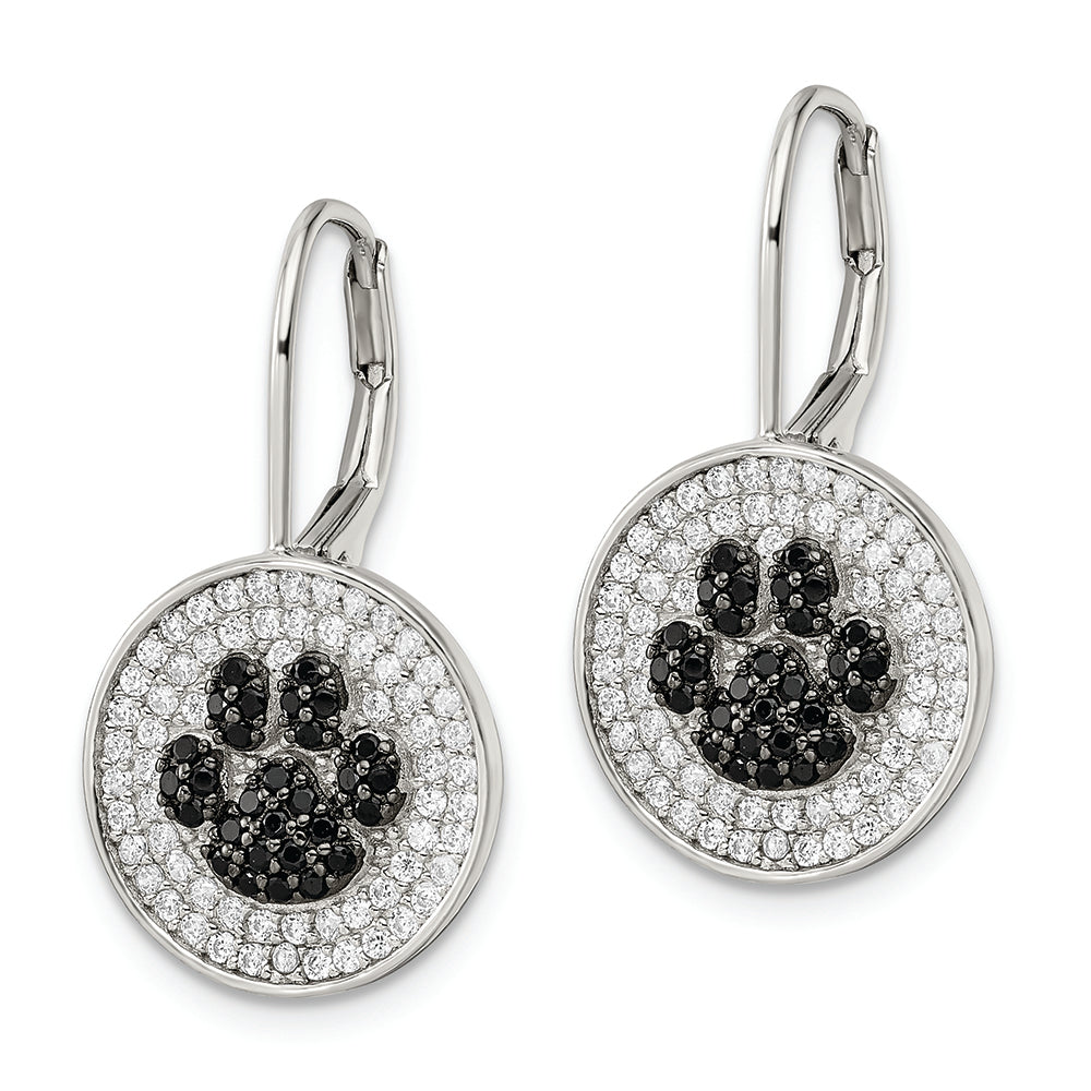 Sterling Silver Polished CZ Paw Print Leverback Earrings