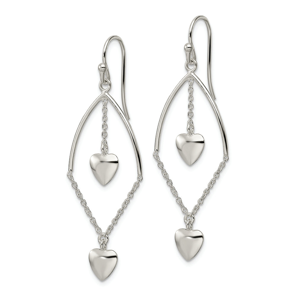 Sterling Silver Polished Dangle Hearts Dangle Earrings
