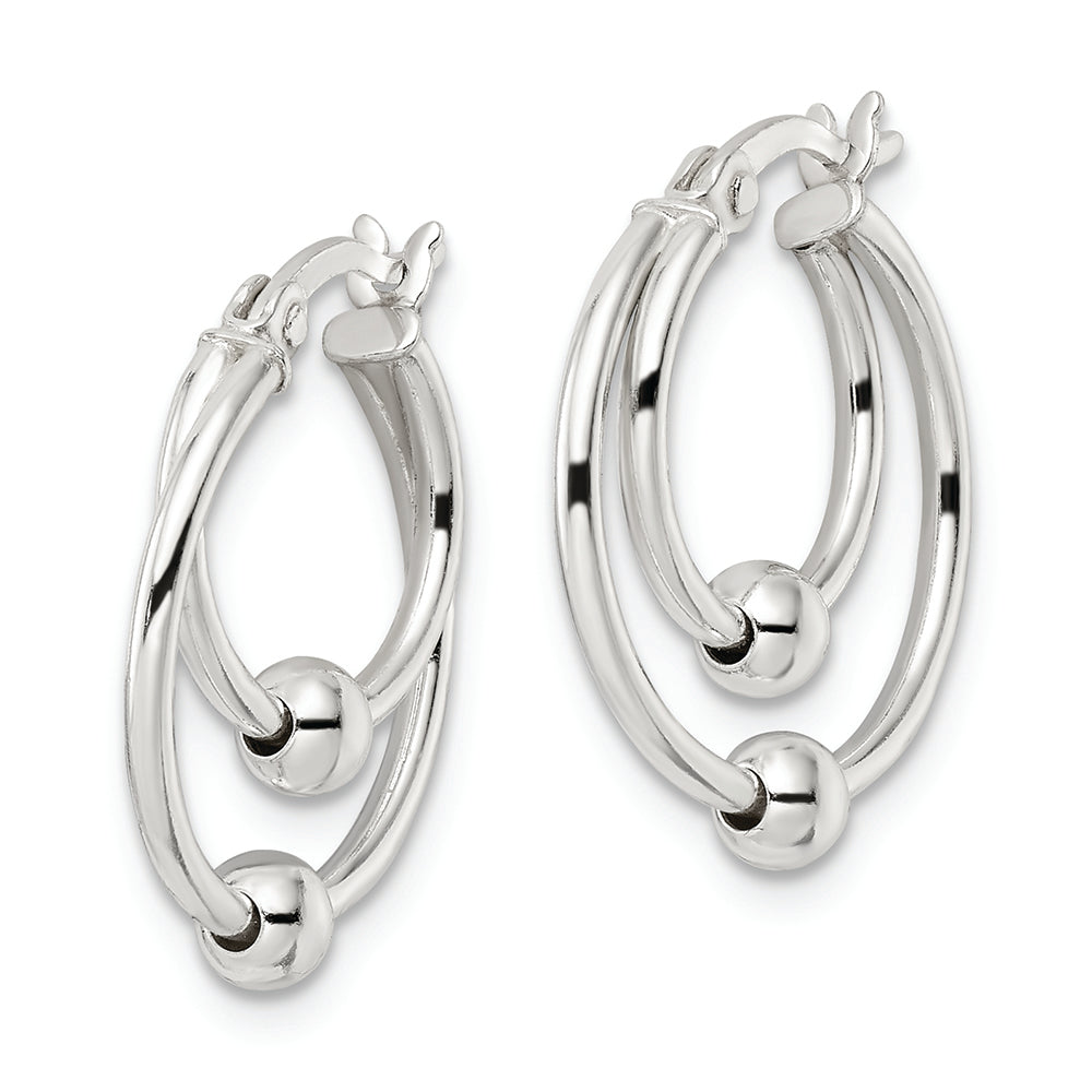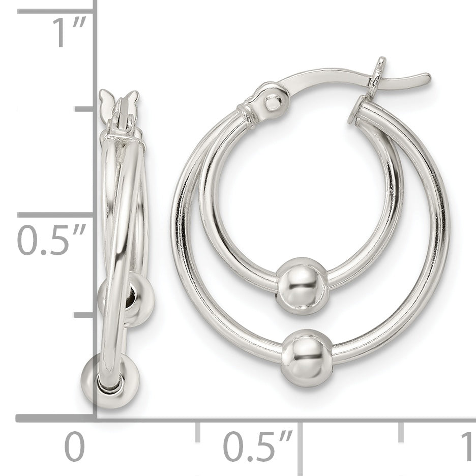 Sterling Silver Polished Double Circle Beaded Hoop Earrings