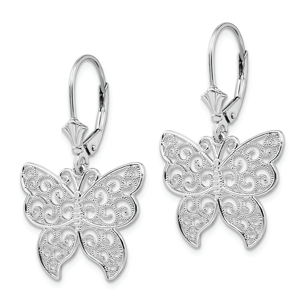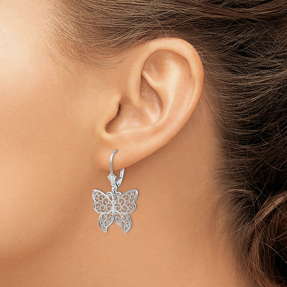 Sterling Silver Polished Filigree Butterfly Leverback Earrings