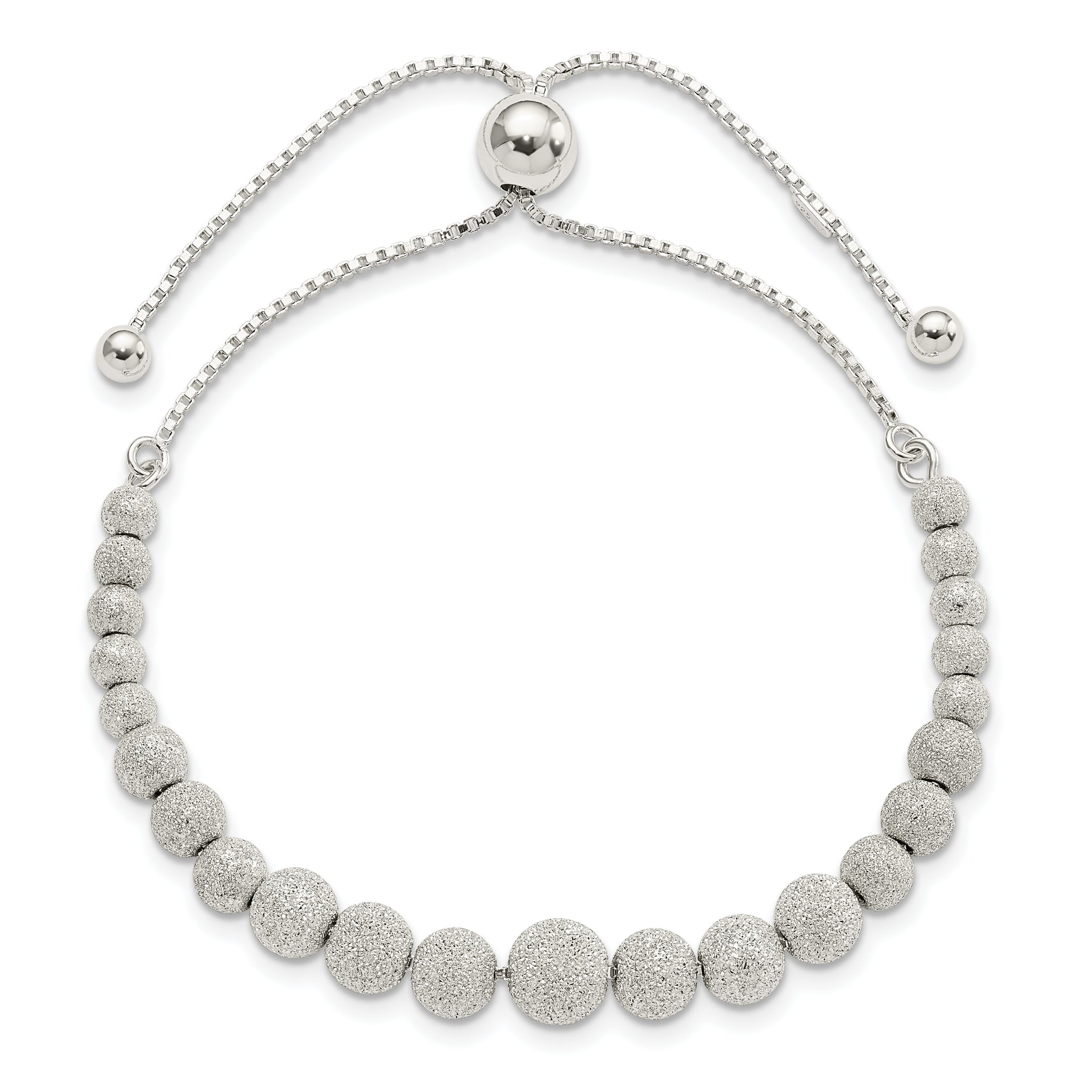 Sterling Silver Polished & Lasered Beaded Adjustable Bracelet