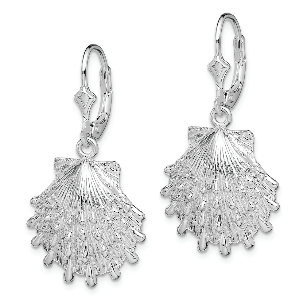 Sterling Silver Polished Lions Paw Shell Leverback Earrings