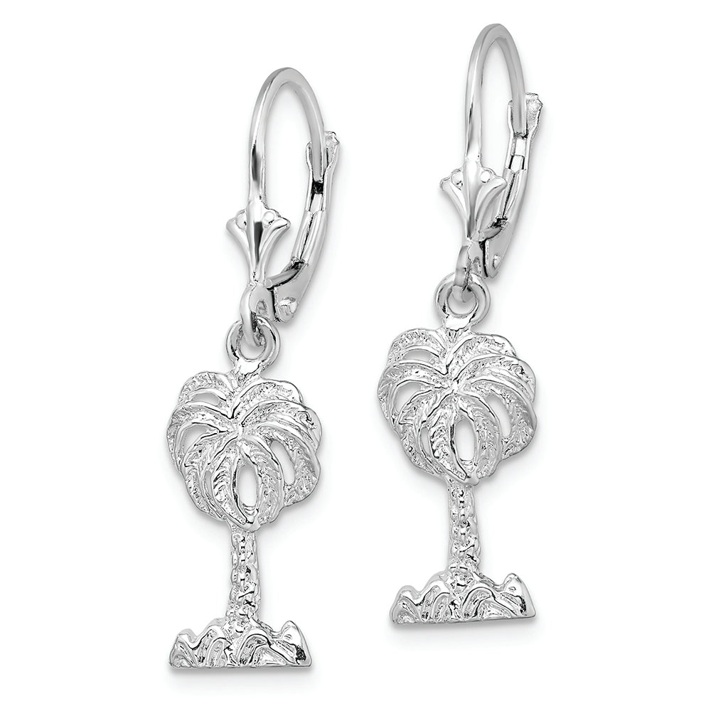 Sterling Silver Polished Palm Tree Leverback Earrings