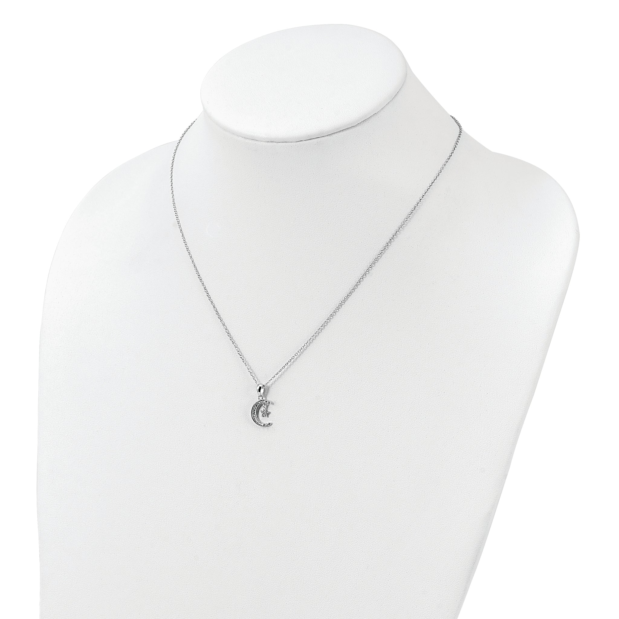 Sterling Silver Polished Rhodium-plated CZ Moon & Star 18in Necklace