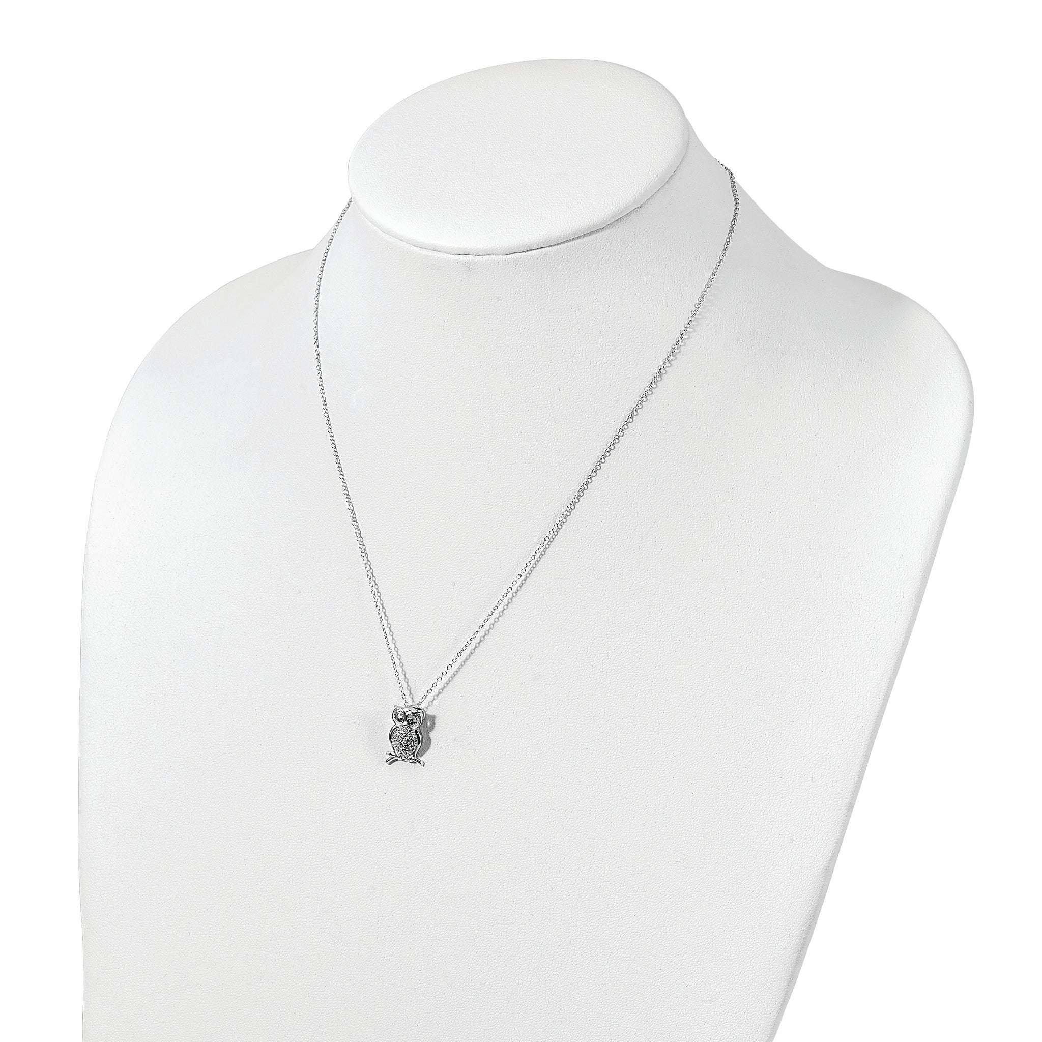 Sterling Silver Polished Rhodium-plated Green/Clear CZ Owl 18in Necklace
